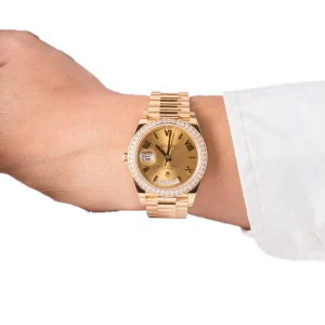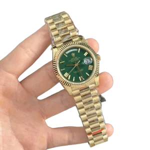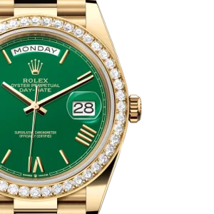 Rolex Day-Date 40 Yellow Gold Green Roman Numeral Dial Diamond Bezel M228348RBR-0040