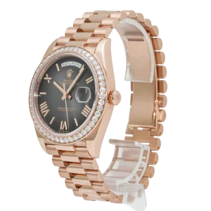 Rolex Day-Date 40 228345 Rose Gold Black Dial Diamond Bezel