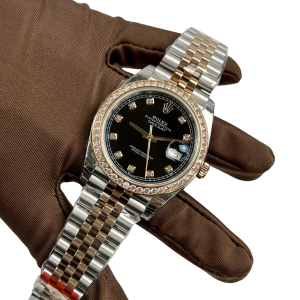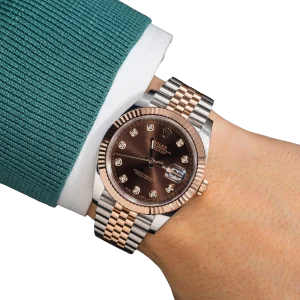 Rolex Datejust 41MM 126331 Chocolate Diamond Dial Fluted Bezel Two Tone Rose Gold Jubilee Bracelet