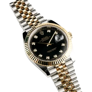 Rolex Datejust 41mm Stainless Steel Yellow Gold Black Diamond Dial Jubilee 126333-006