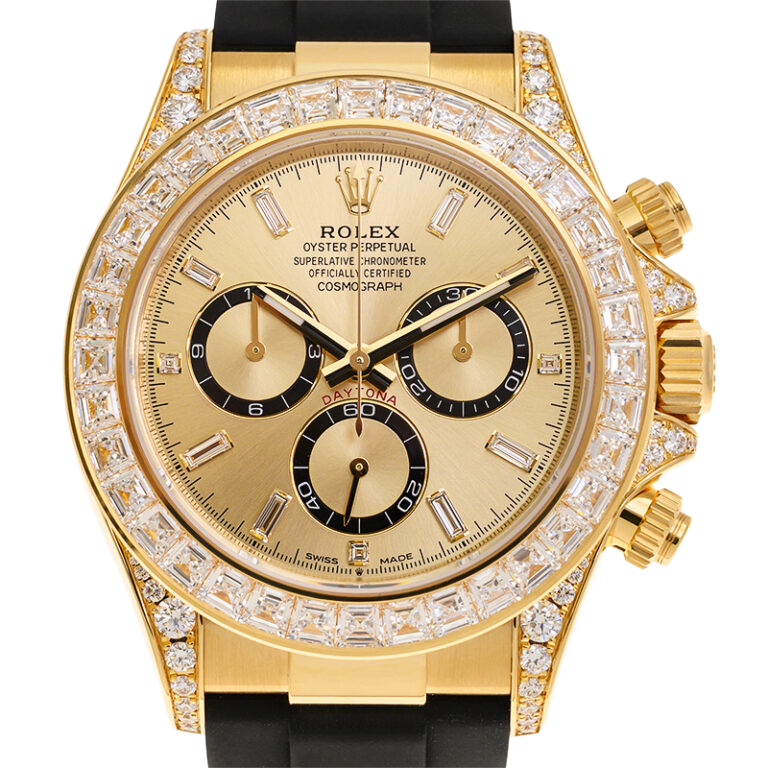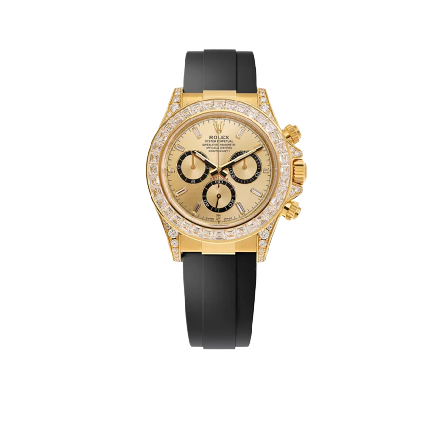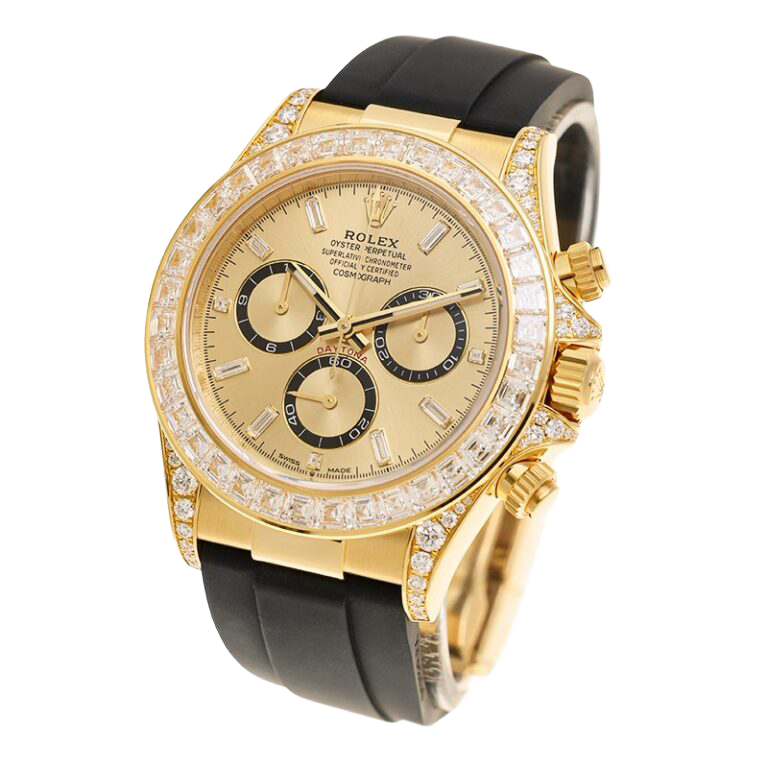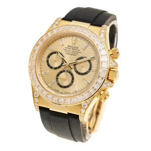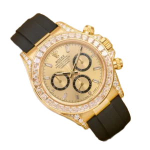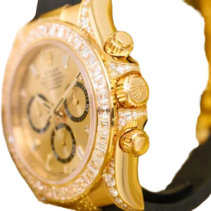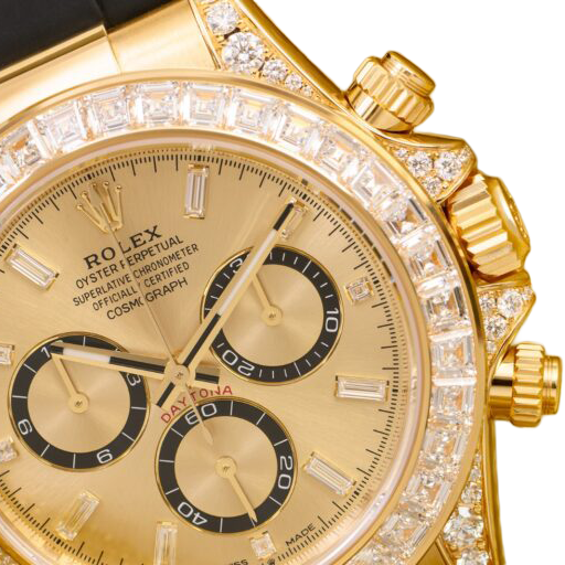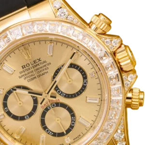 The Rolex reference 126538TBR presents a striking expression of the brand’s modern chronograph design, combining bold presence with refined detailing. Its 40mm Oyster-style case delivers a confident silhouette, enhanced by a bezel adorned with brilliant accents that elevate the watch’s overall visual impact. Engineered for everyday versatility, the case construction supports reliable performance while maintaining a distinctly luxurious character.