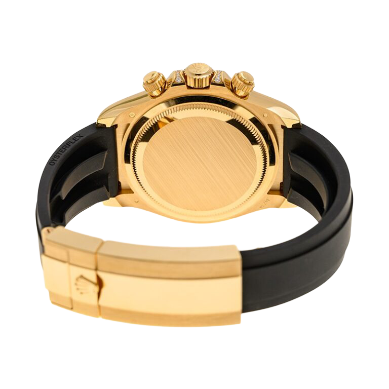The dial features a rich golden tone paired with bright black chronograph counters, subtly highlighted with refined detailing that adds depth and contrast. Completed with the sporty Oysterflex bracelet, the watch balances comfort, durability, and elegance—making the 126538TBR a compelling choice for collectors seeking a contemporary Rolex chronograph with elevated presence and unmistakable prestige.