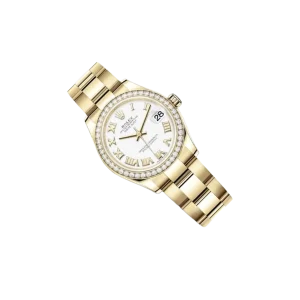 This timepiece is a refined union of precision and artistry, embodying timeless elegance. Crafted in 18 kt yellow gold with a 31 mm case, it is elevated by a diamond-set bezel that radiates understated luxury.