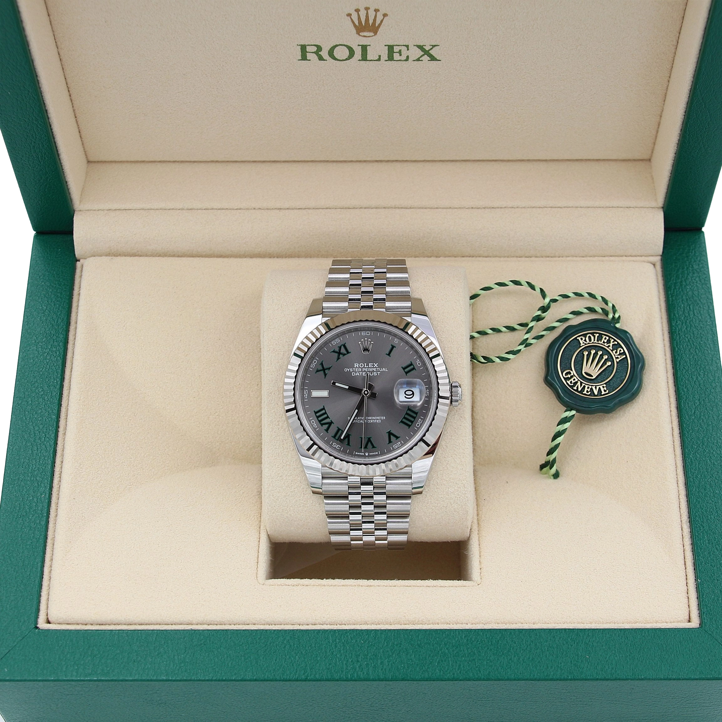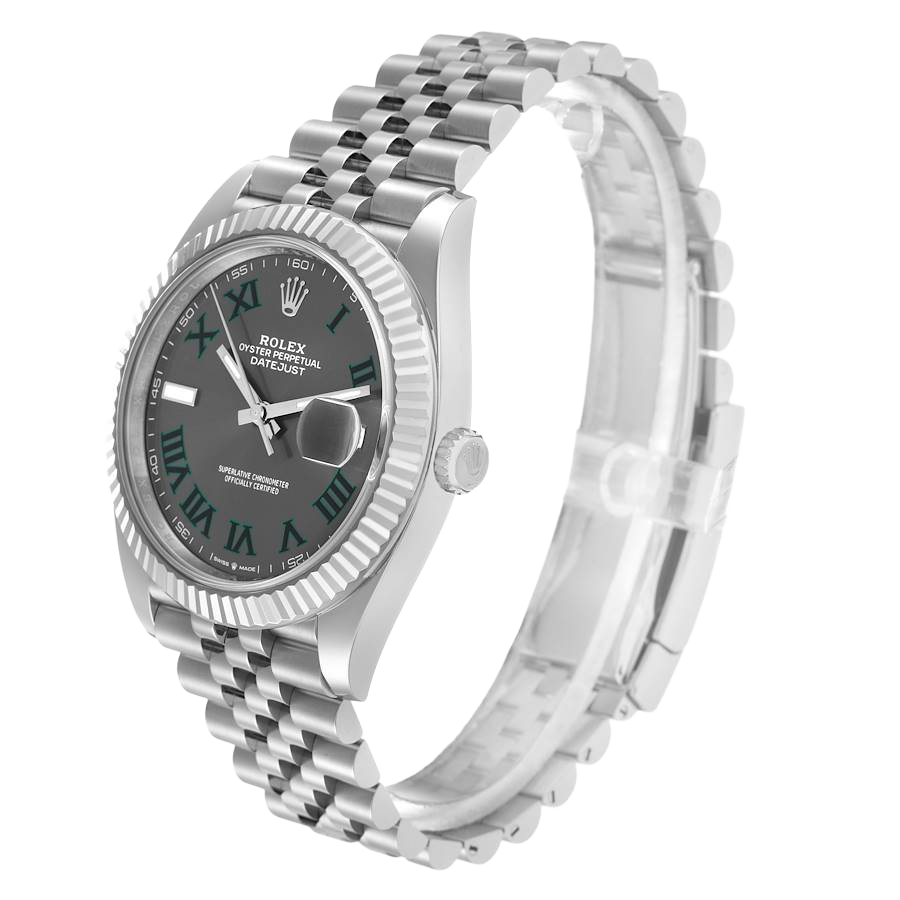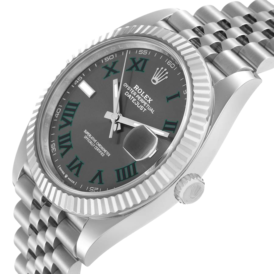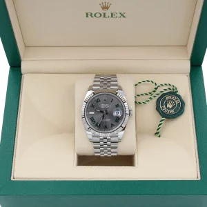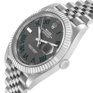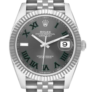 The distinctive slate “Wimbledon” dial adds character and sophistication, featuring a balanced layout that preserves the classic Datejust identity while offering a contemporary aesthetic. Subtle detailing and a polished finish enhance its premium look without compromising everyday wearability.