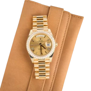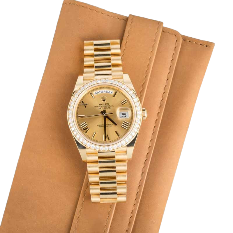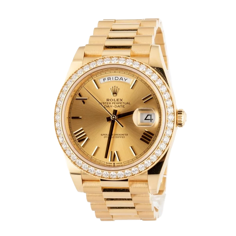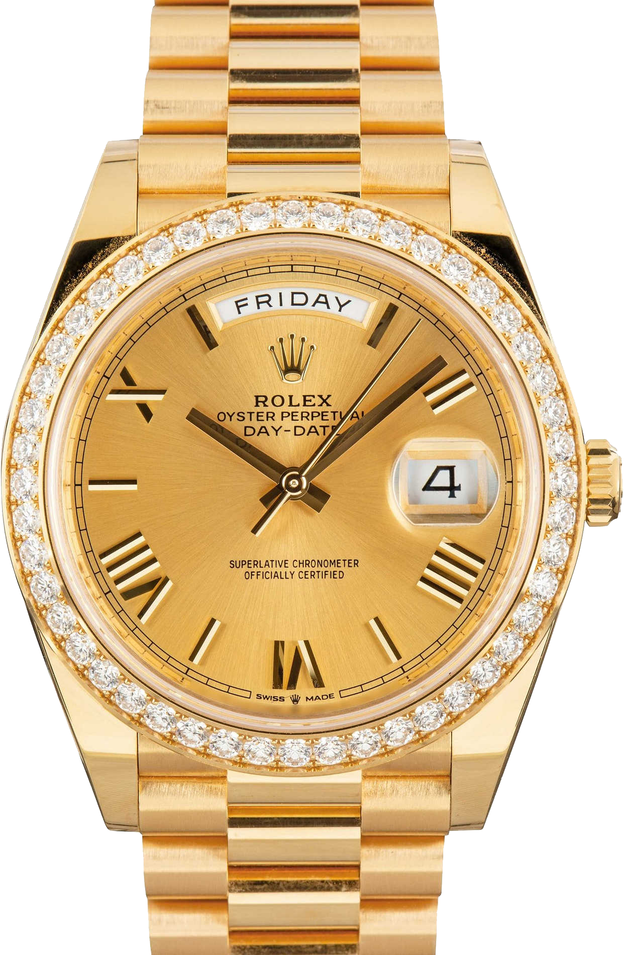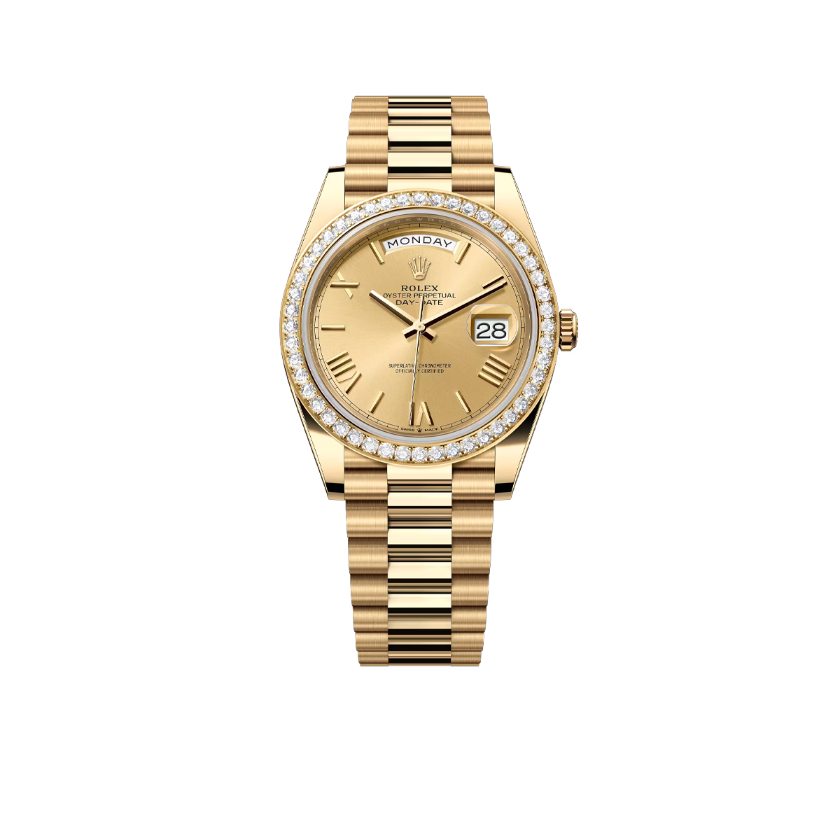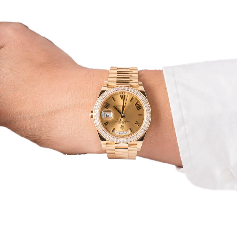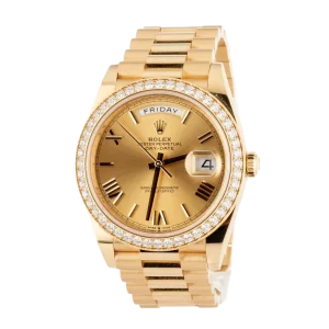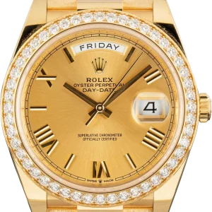 Rolex Day-Date 40 228348RBR Yellow Gold Diamond Bezel Champagne Roman Dial