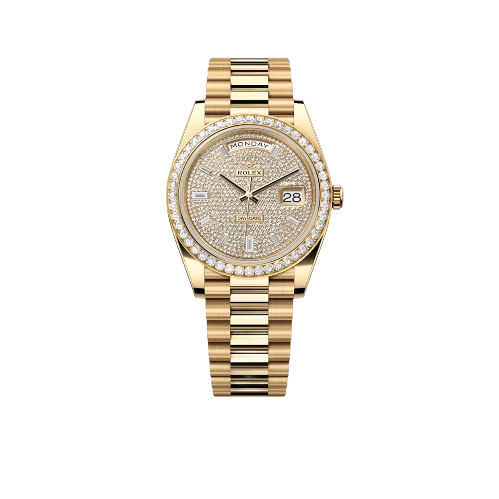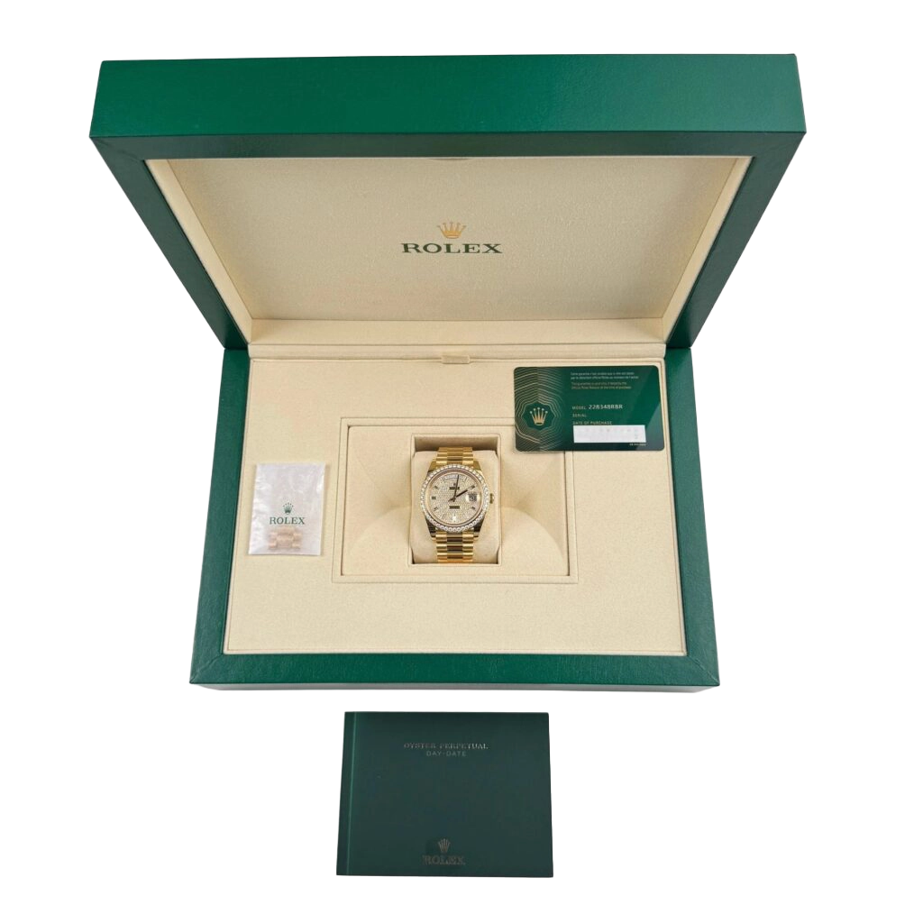 Rolex Day-Date 40 228348RBR Yellow Gold Diamond Dial Diamond Bezel