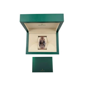 As part of the iconic Day-Date collection, this timepiece includes the day display at 12 o’clock and the date window at 3 o’clock, both magnified by Rolex’s Cyclops lens for effortless readability. Paired with the prestigious President bracelet, known for its polished three-link construction and exceptional comfort, the Day-Date 228235 seamlessly blends luxury with practicality. Perfect for those who value understated elegance and superior craftsmanship, this watch is a symbol of timeless sophistication.