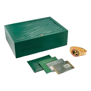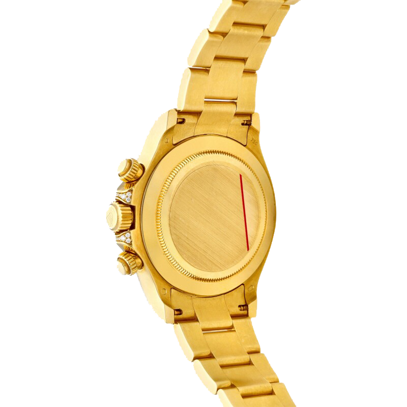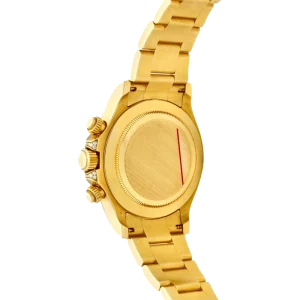 The black lacquered dial provides the perfect contrast, featuring diamond-set hour markers and yellow gold subdials with a textured finish, adding depth and elegance to the design. Powered by Rolex’s legendary chronograph movement, the Daytona offers precision timing and high performance, embodying its motorsport heritage.