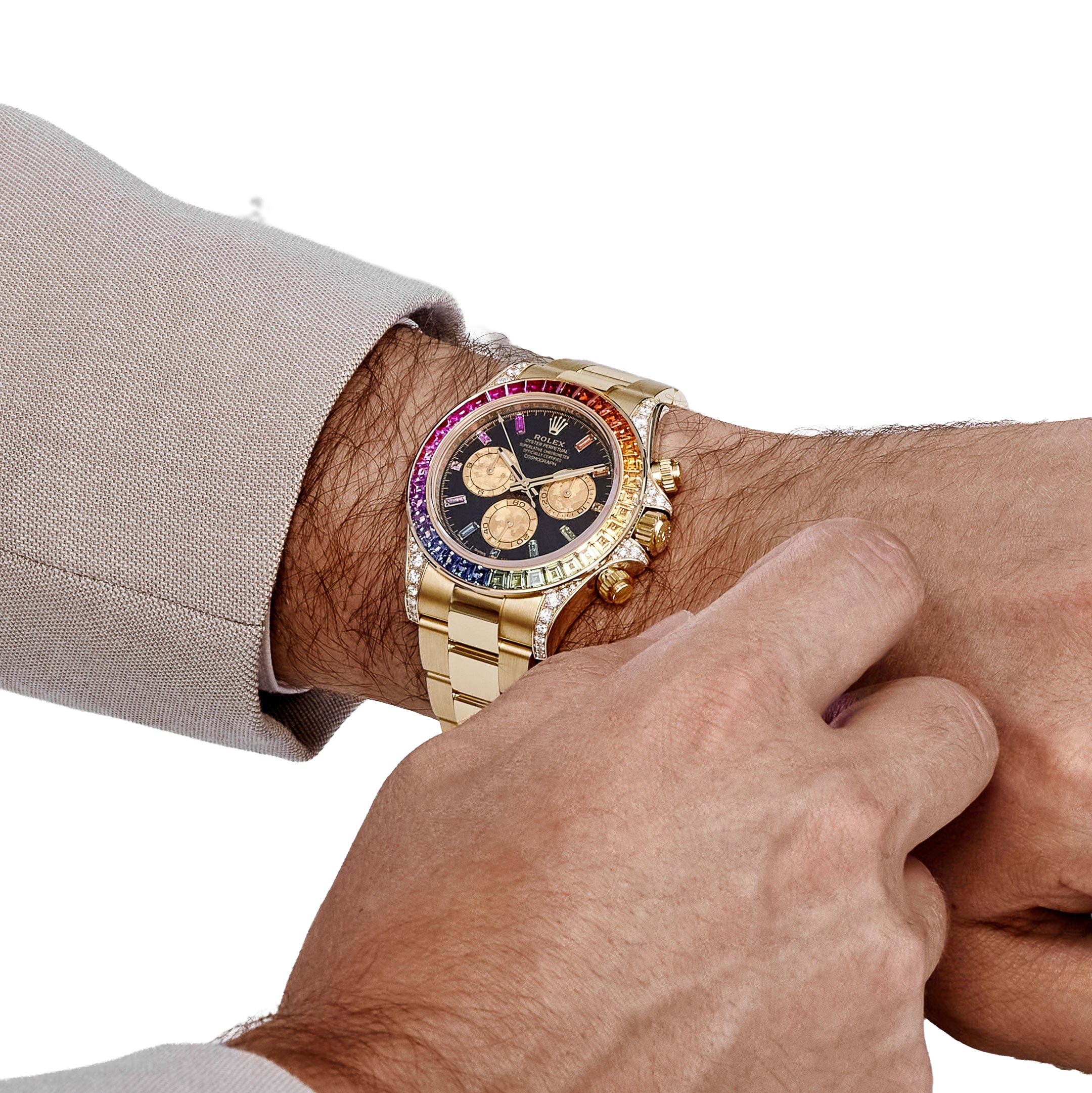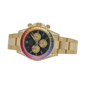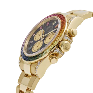 The signature Daytona tri-register layout remains, but it’s framed by a riot of gems, giving the piece its unmistakable identity. With demand consistently outstripping supply and production rumored to be extremely limited, the 126598RBOW cements its status as the ultimate expression of the Daytona line for collectors who want flamboyance with factory precision.
