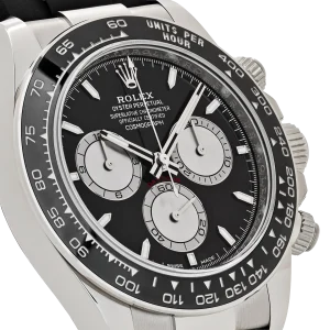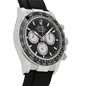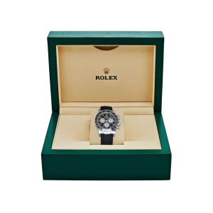 Inside, the watch is powered by the in-house Caliber 4131, known for its precision, reliability, and impressive 72-hour power reserve. The Daytona’s classic three-register layout, combined with its luxurious materials and high-performance movement, makes the 126519LN a perfect choice for collectors who value both functionality and enduring design.