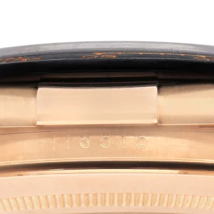 Case: 18K rose gold oyster case 40.0 mm in diameter. Special 18k rose gold screw-down crown and pushers. Rolex logo on the crown.