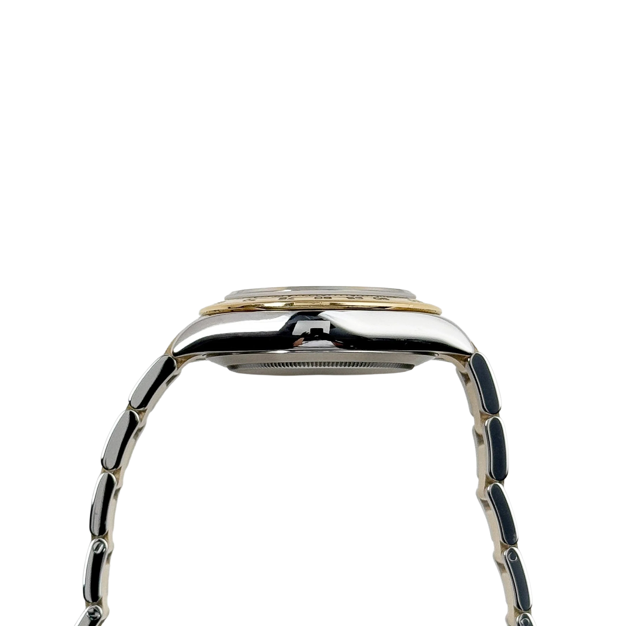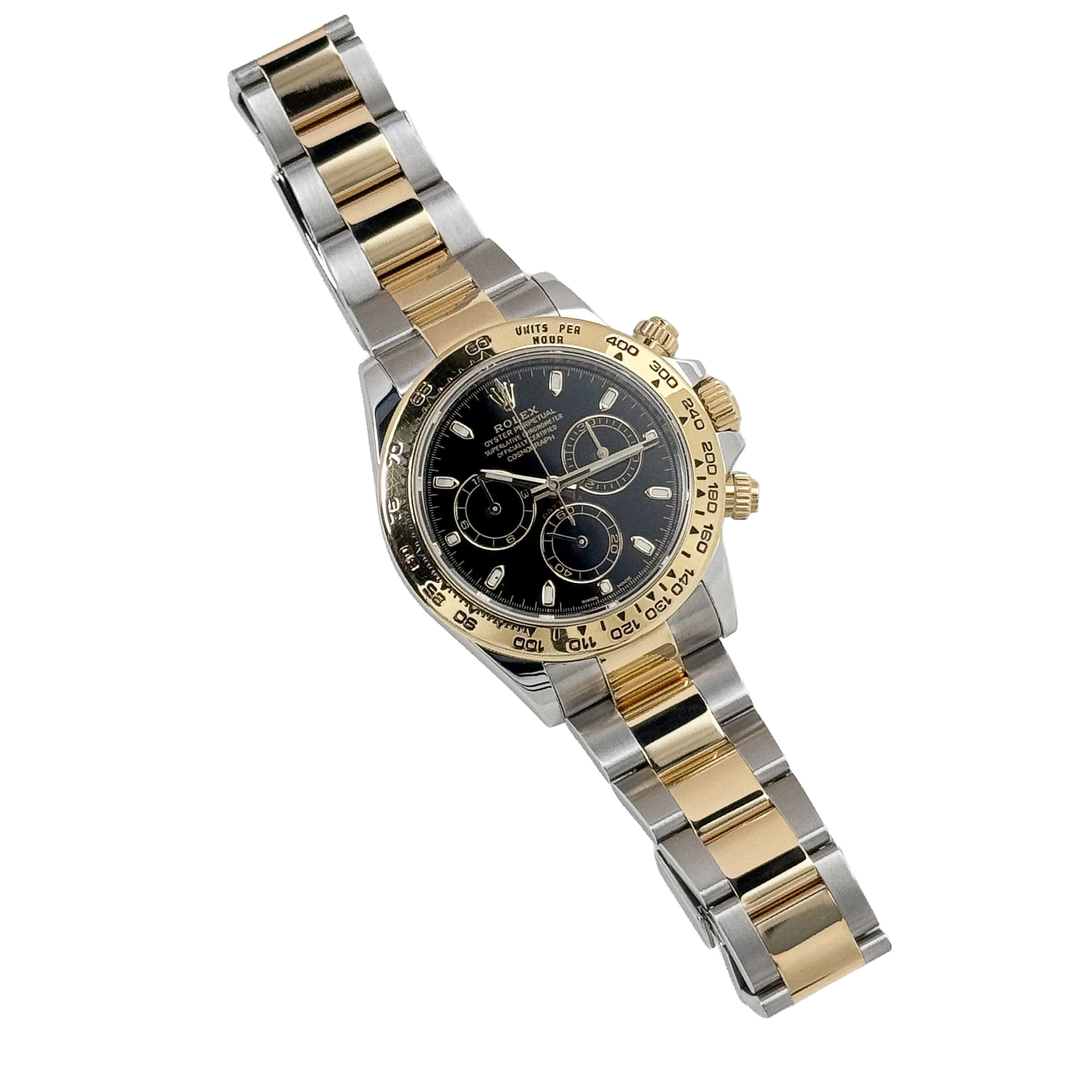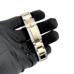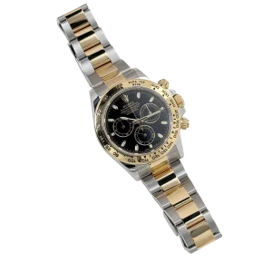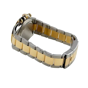 The tachymeter-engraved yellow gold bezel highlights its motorsport heritage, while the Oyster bracelet, composed of stainless steel with yellow gold center links, ensures both style and comfort. Equipped with a reliable chronograph function, the Daytona 116503 combines practical functionality with aesthetic appeal.