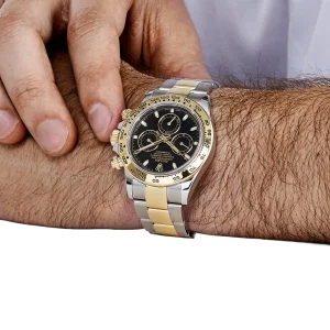 Designed for collectors who value timeless design and high performance, this two-tone Daytona stands as a testament to Rolex’s dedication to craftsmanship and versatility.