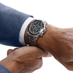 Bezel: Black monobloc Cerachrom ceramic bezel engraved with the tachymeter scale.