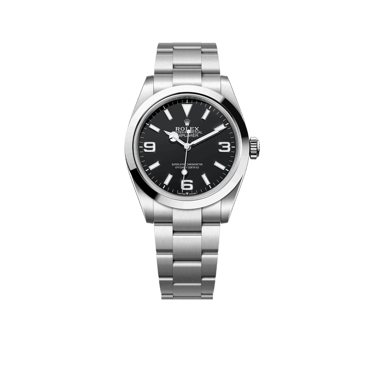 Rolex Explorer 40 Oystersteel 224270-0001. New for 2023, the Rolex Oyster Perpetual Explorer 40 marks the expansion of the iconic series of the prestigious professional watch family by adding a new 40mm Oystersteel version. Elegant and versatile, this stunning timepiece is the perfect luxury companion for those who love to push boundaries. The stunning chronometer features a black lacquered dial with a crisp Chromalight display with a long blue glow. It is the perfect backdrop for the luminous 18k White Gold hour markers in the form of rectangles, Explorer-specific numerals 3, 6, 9 and an inverted triangle at 12 o’clock. The polished Mercedes-branded hour hand and the Breguet-style sword-shaped minute hand are crafted from 18k White Gold and filled with luminescent material that emits a long-lasting glow. The graceful second hand with a round tip and a luminous circle in front of the hand is also made of 18k White Gold. A well-readable minute scale is applied along the outer contour of the dial. The characteristic design of the model is emphasized by a ribbed, screw-down crown made of Oystersteel Triplock with double waterproof system, adorned with the Rolex logo. The dial is covered with a scratch-resistant sapphire crystal with anti-reflective coating. A solid Oystersteel screw-down case back with fine fluted edges, closes the movement. The Smooth Oystersteel bezel brings freshness to the austere, clean lines of a watch that has long been an icon. Rugged yet elegant, it fits in perfectly with the Explorer’s storied heritage. The in-house Rolex mechanical movement, caliber 3230, contains 31 jewels and has an approximate power reserve of approximately 70 hours powers the model. This delightful timepiece is presented on an Oystersteel Oyster bracelet three-piece solid links. He features an original Rolex’s Oysterlock folding safety clasp with Easylink 5 mm comfort extension link for securely fixing the watch on the wrist. Water resistant up to 100m/330ft (10 ATM).