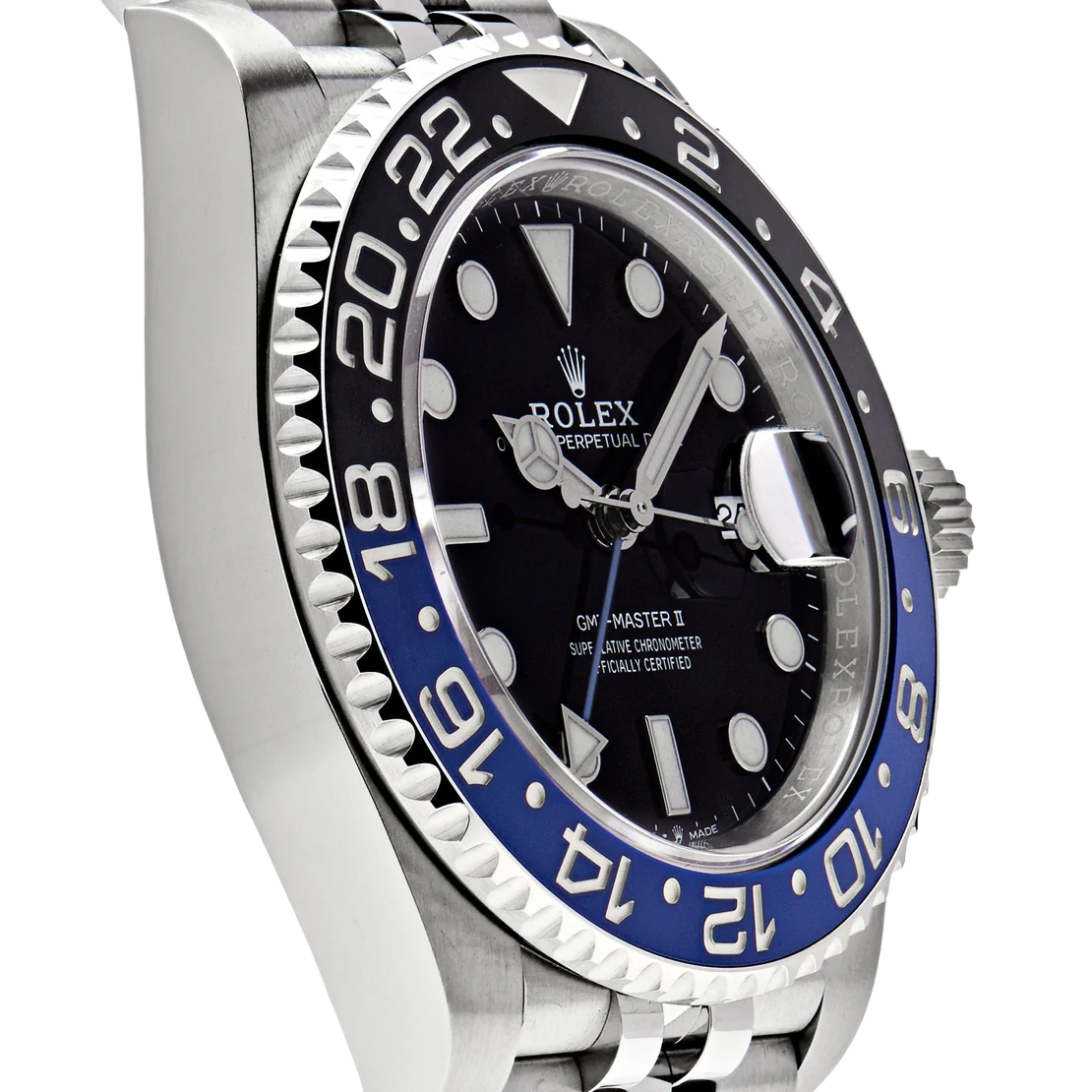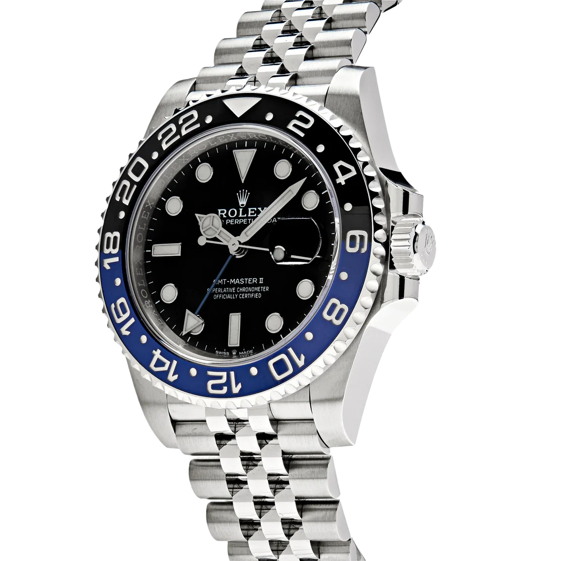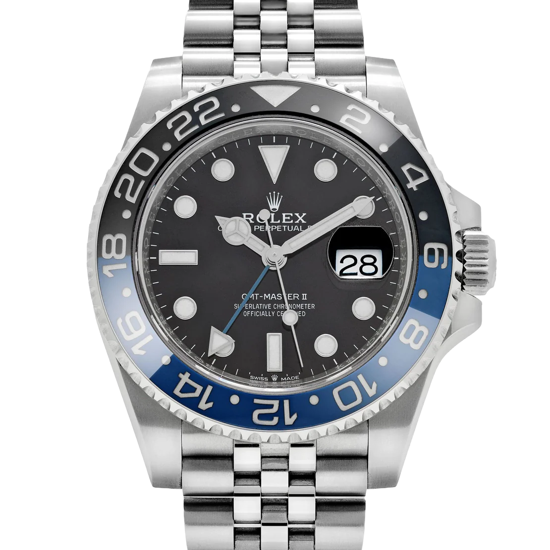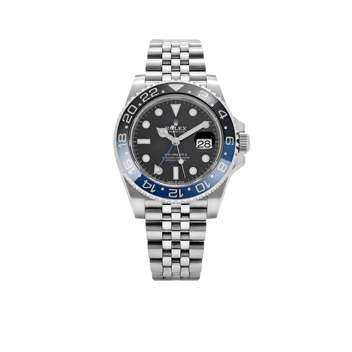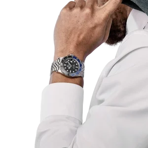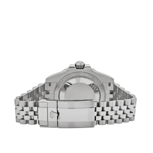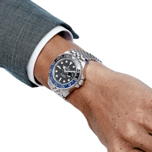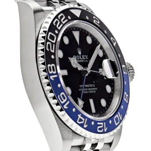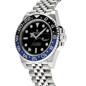 The Rolex GMT-Master II 126710BLNR, nicknamed the ‘Batgirl,’ is a modern classic, combining versatility and sophistication. Crafted in 904L stainless steel, the 40mm case is paired with a sleek black and blue Cerachrom bezel, allowing for easy tracking of a second time zone with its 24-hour engraved scale. This bi-color bezel, along with the Jubilee bracelet, has solidified the ‘Batgirl’ as a collector’s favorite.