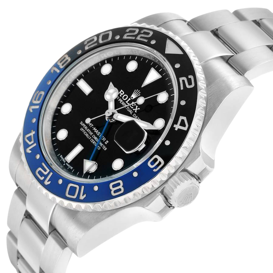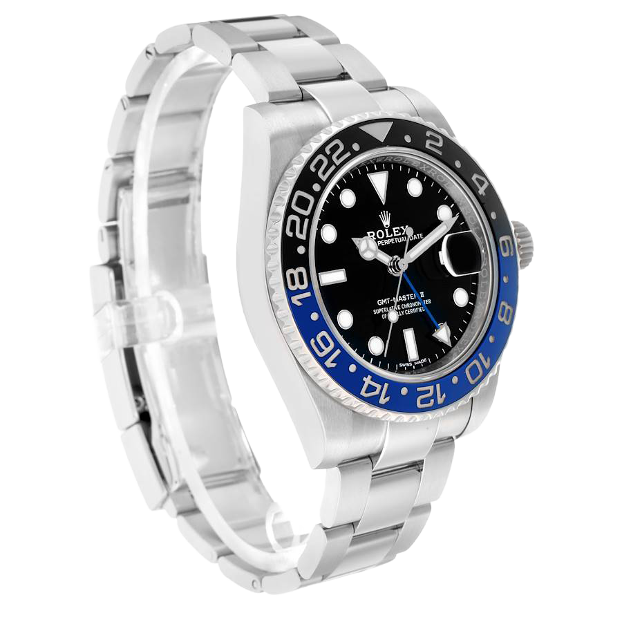 Model Name: Rolex GMT Master II Steel Black Blue Batman Bezel Mens Watch 116710