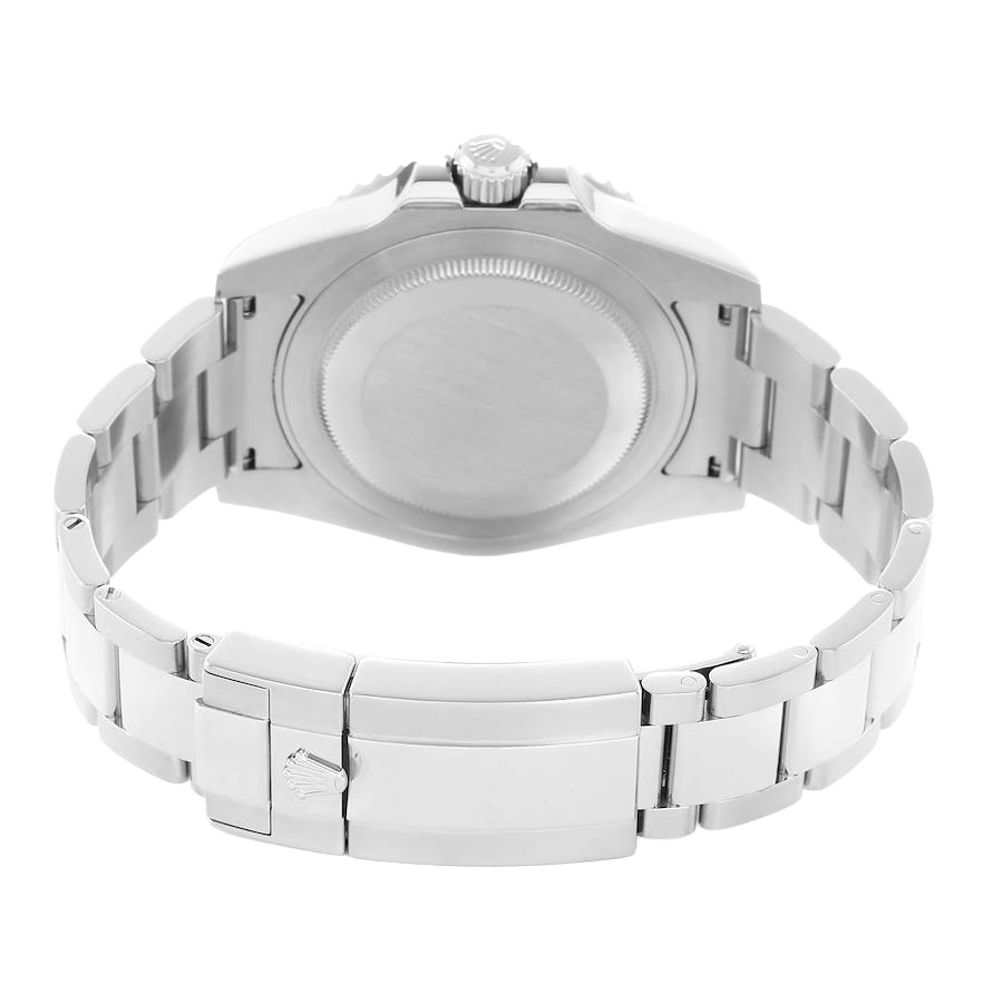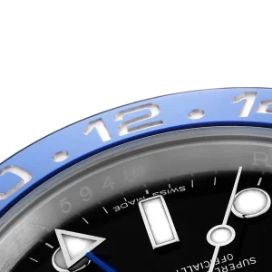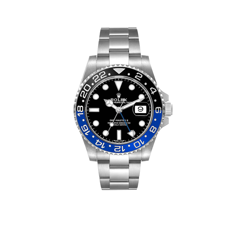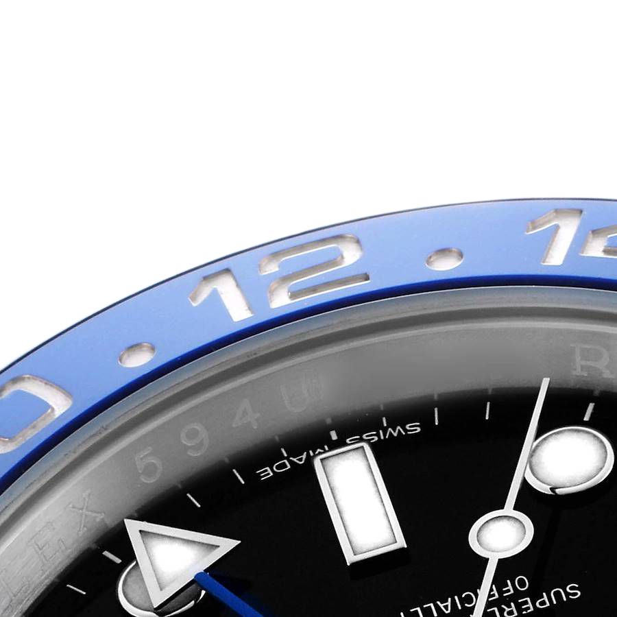 Bezel: Stainless steel bidirectional rotating bezel with black and blue “Batman” Cerachrom ceramic insert, engraved with the 24-hour scale.