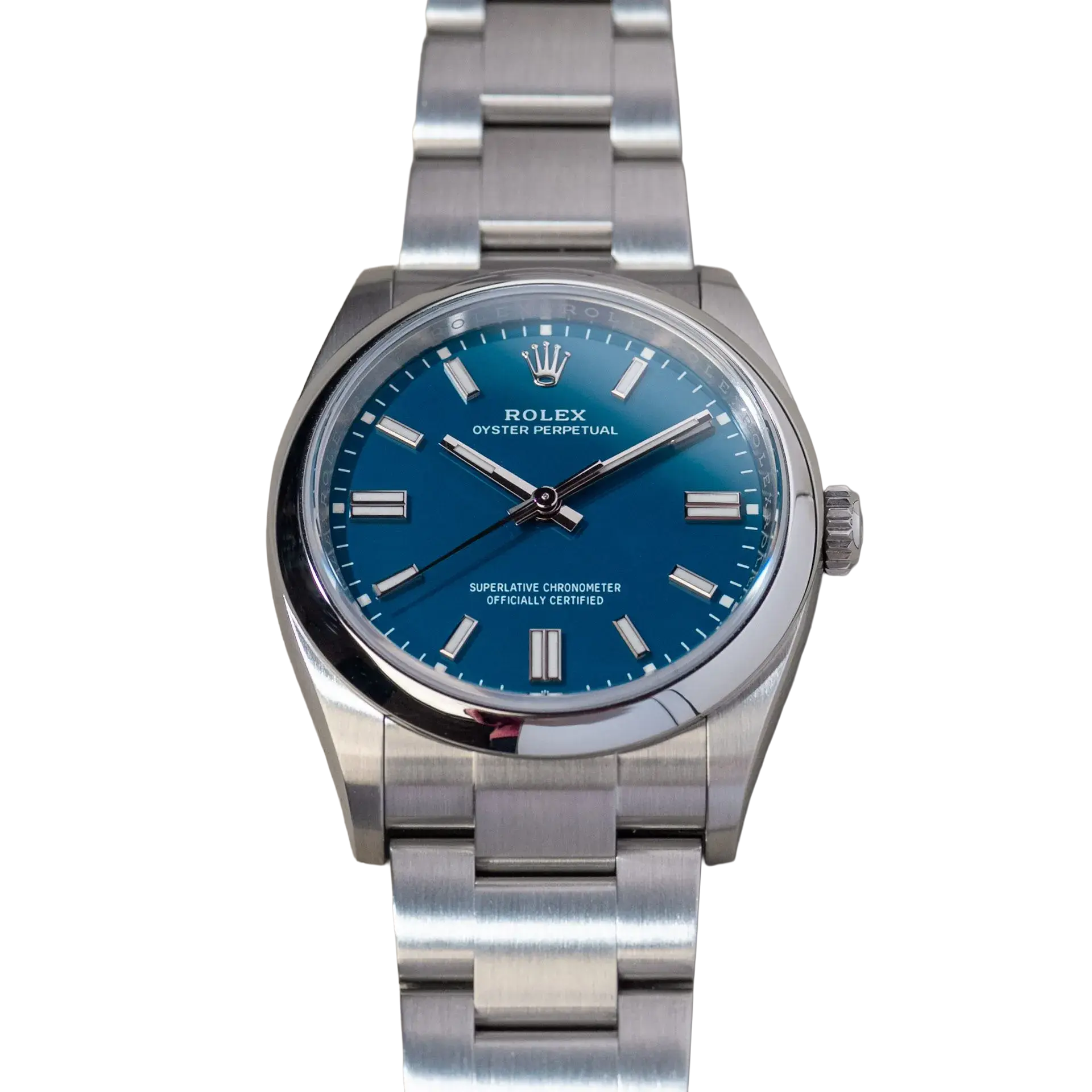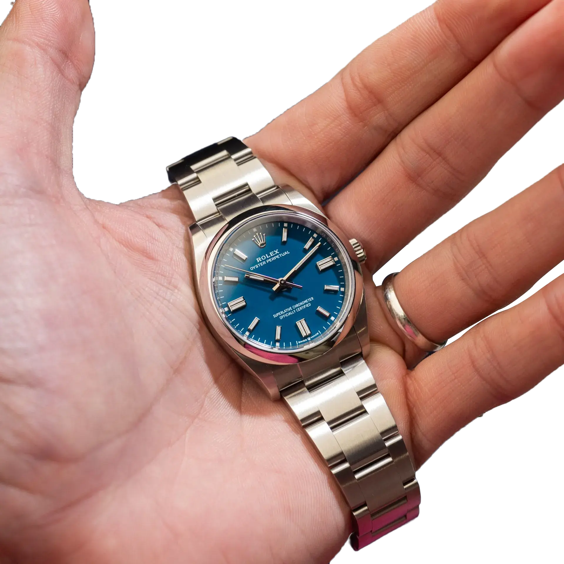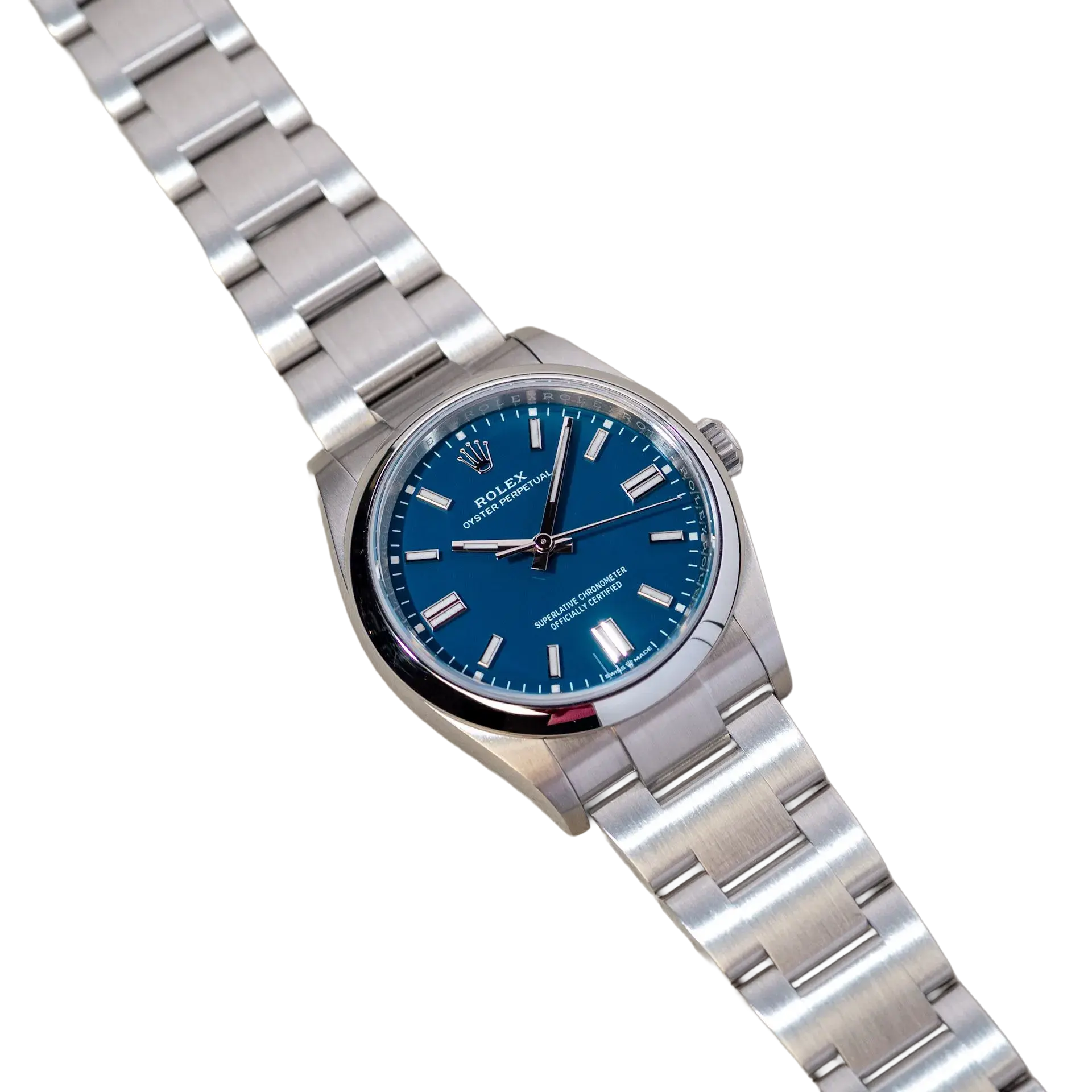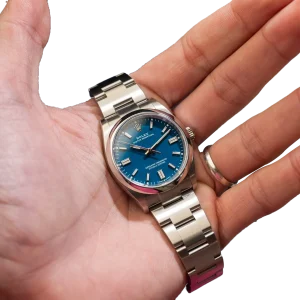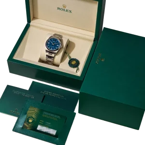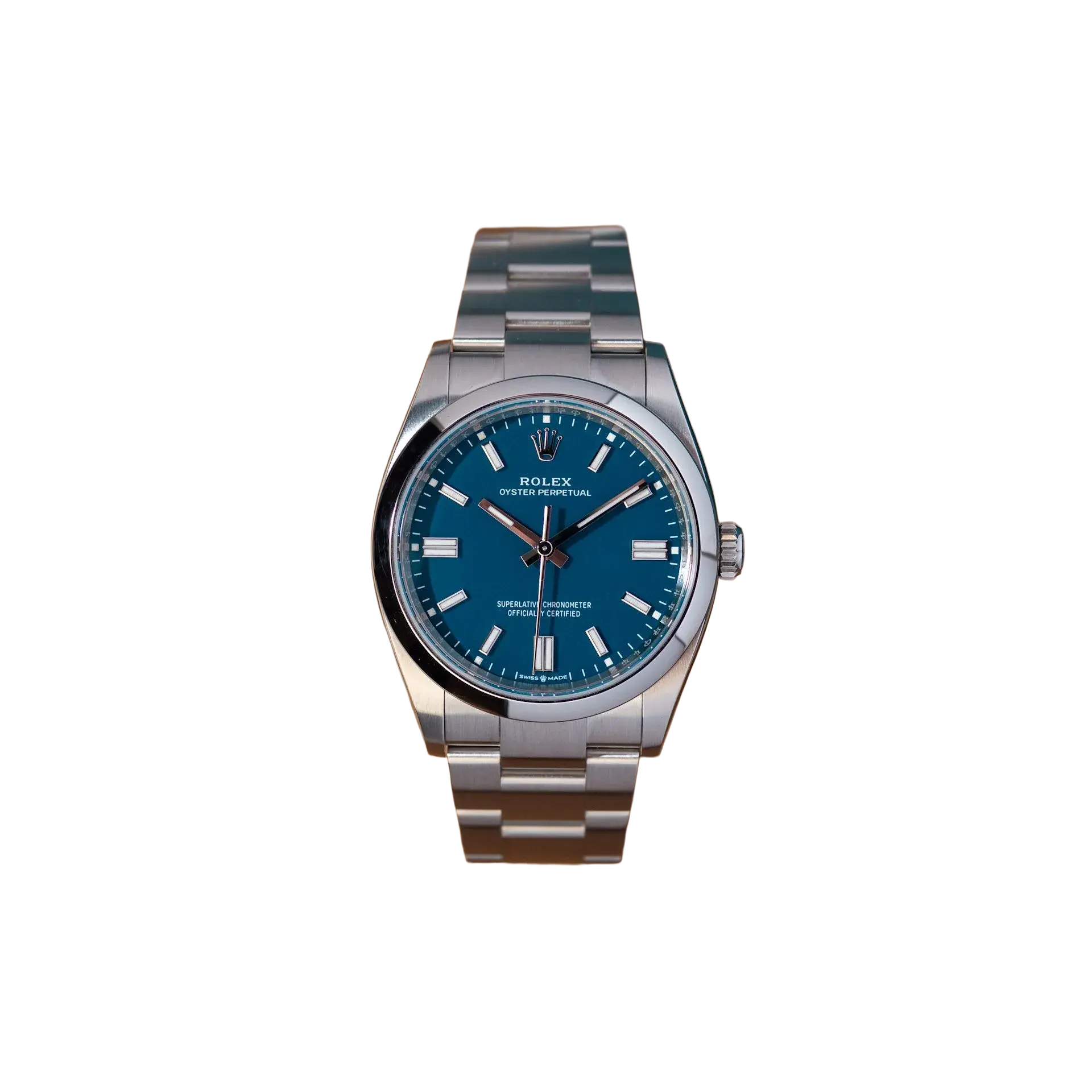 The Rolex Oyster Perpetual 41 ref. 134300 Blue is a refined blend of timeless classic design and modern style, highlighted by its deep blue dial. The watch features a corrosion-resistant Oystersteel case, a self-winding Calibre 3230 movement with approximately 70 hours of power reserve, and 100-meter water resistance, ensuring outstanding performance and durability. The lacquered blue dial with luminous hour markers creates an elegant, versatile look that transitions effortlessly from everyday wear to formal occasions.