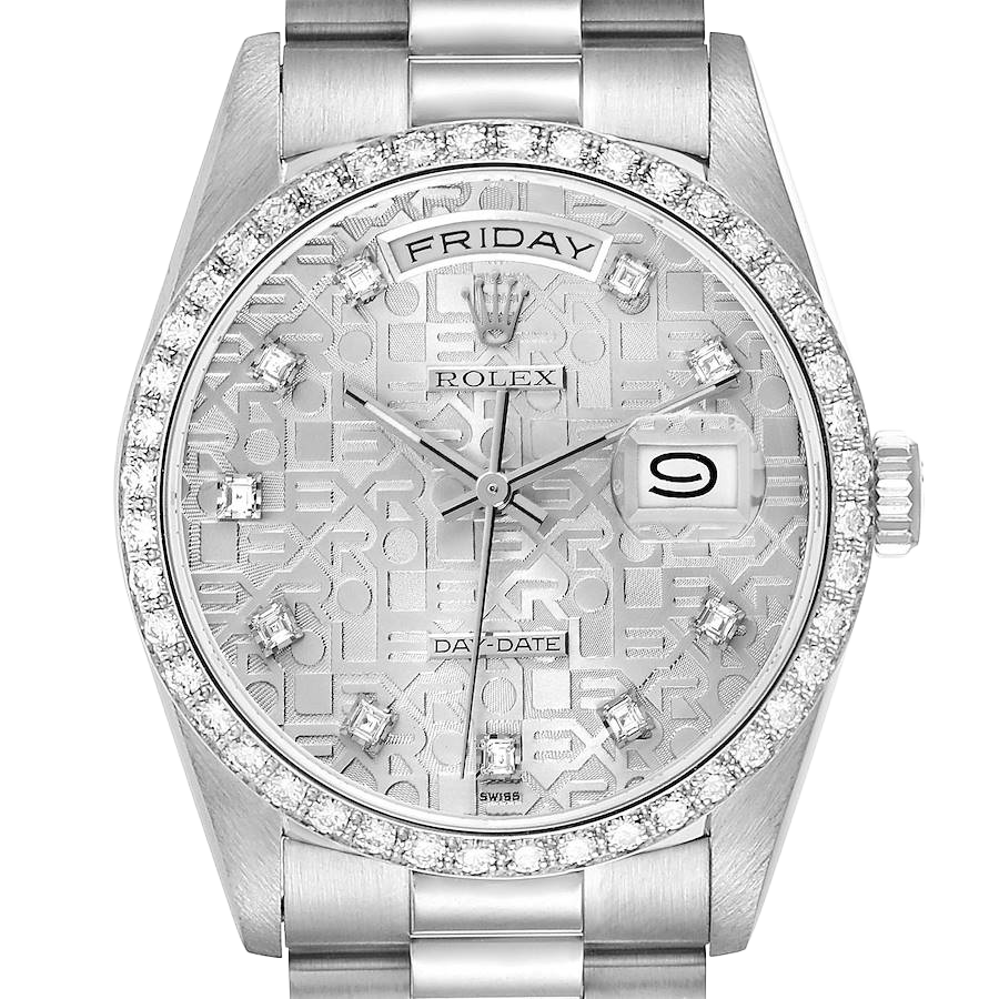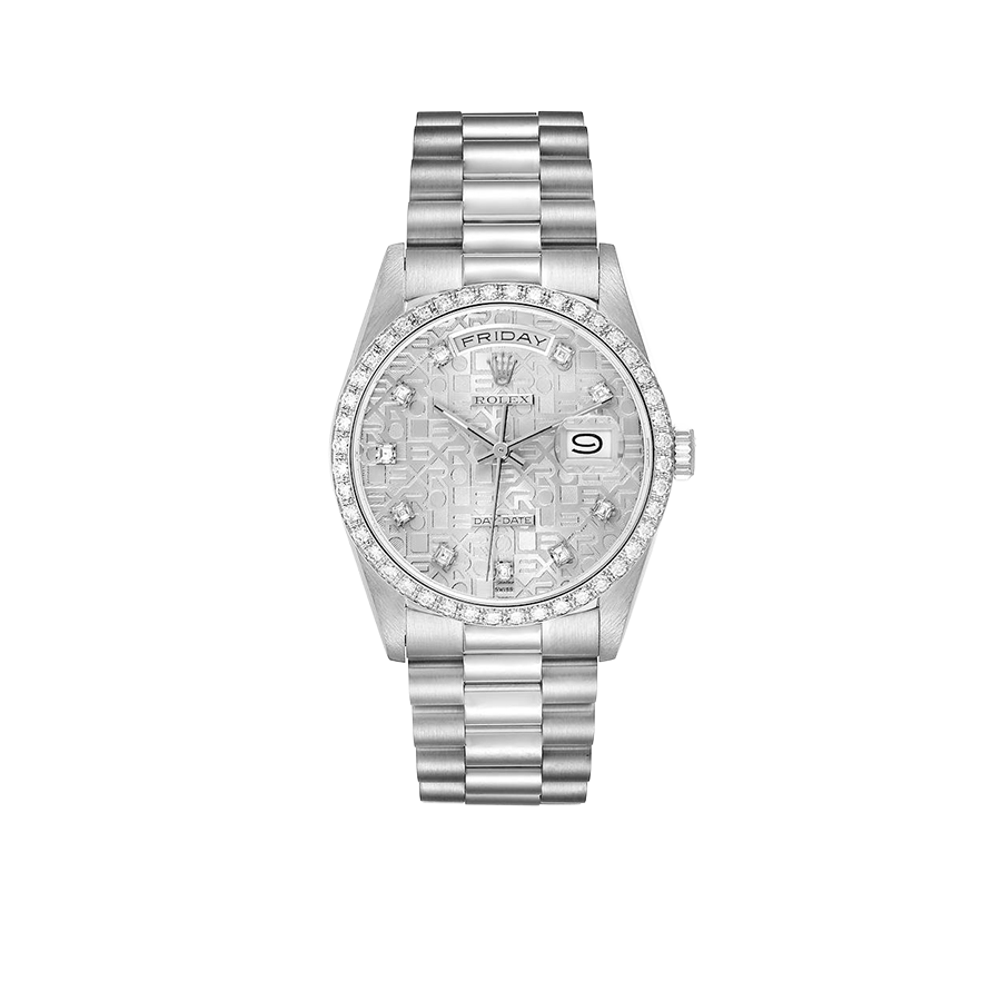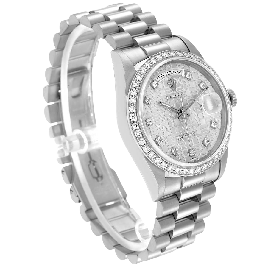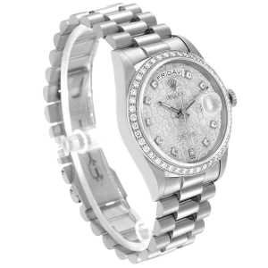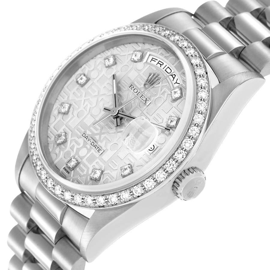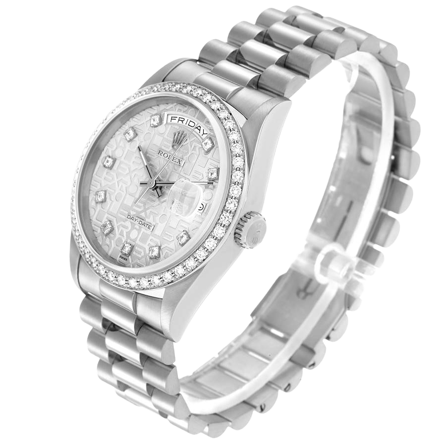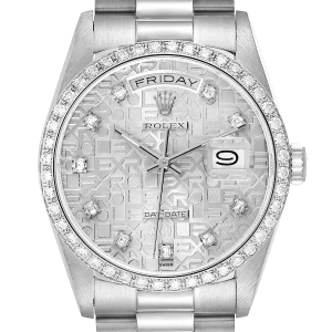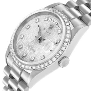 Model Name: Rolex President Day-Date White Gold Diamond Mens Watch 18349