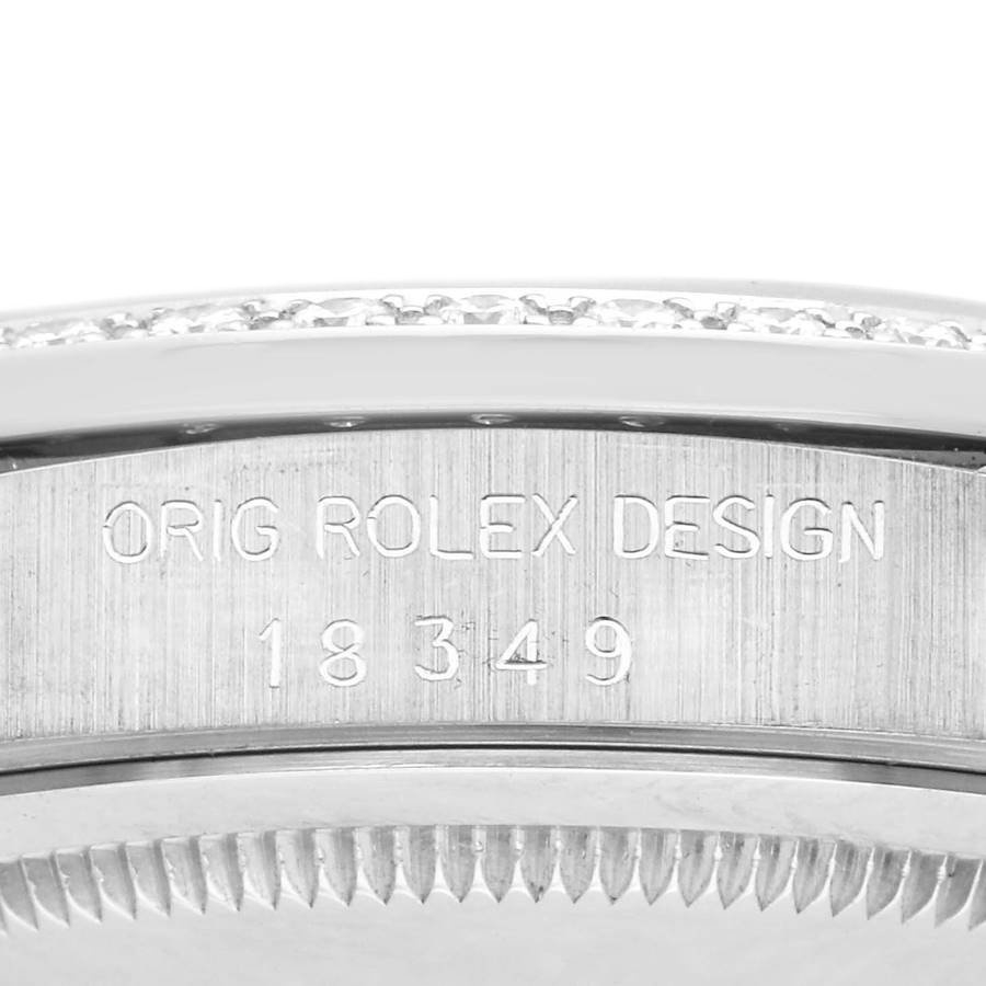 Bezel: 18k white gold original Rolex factory diamond bezel.