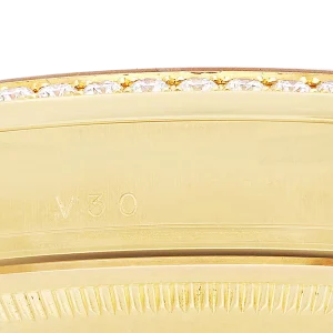 Bezel: 18K yellow gold bezel set with original Rolex factory diamonds.