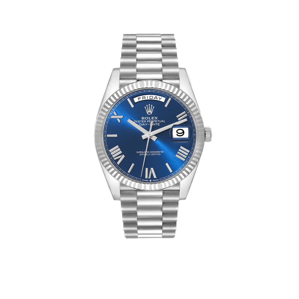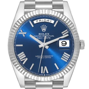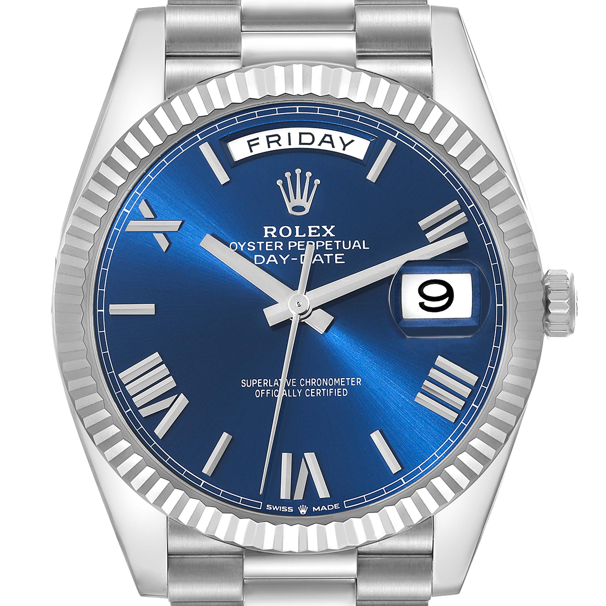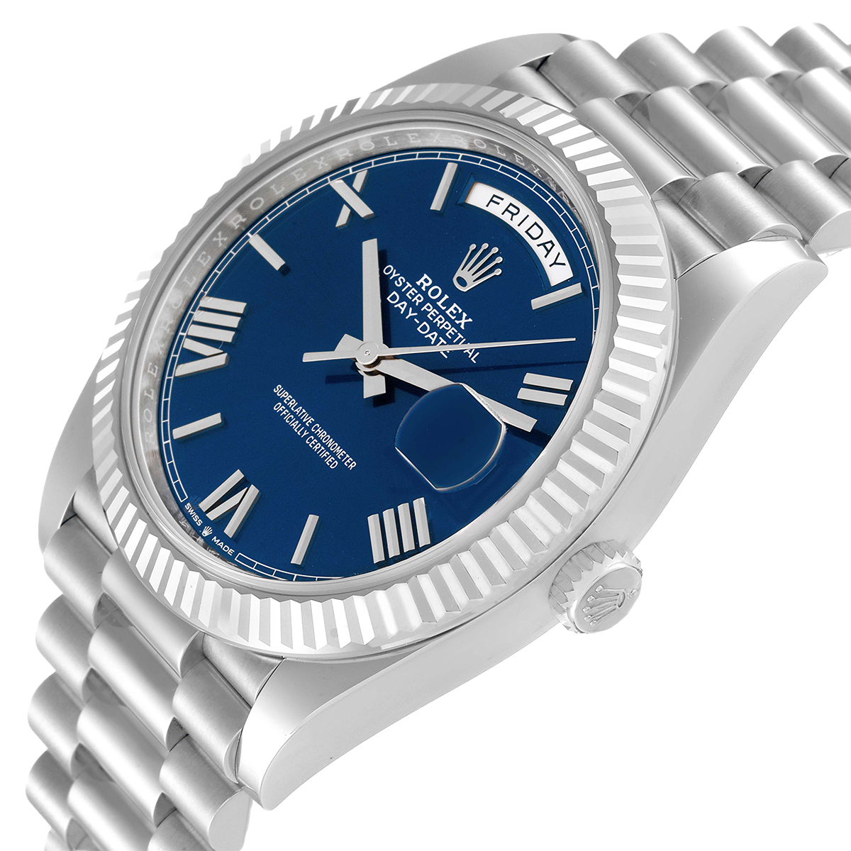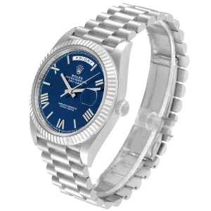 Model Name: Rolex President Day-Date 40 Blue Dial Platinum Mens Watch 228236 Unworn