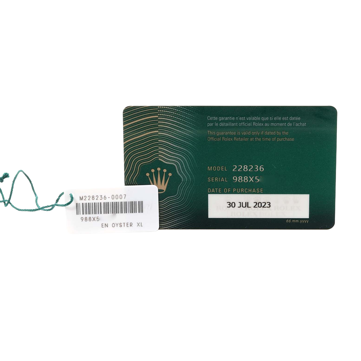 Case: Platinum oyster case 40.0 mm in diameter. Rolex logo on a crown.