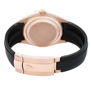 Case: 18k rose gold oyster case 42.0 mm in diameter. Rolex logo on the screw-down twinlock crown.