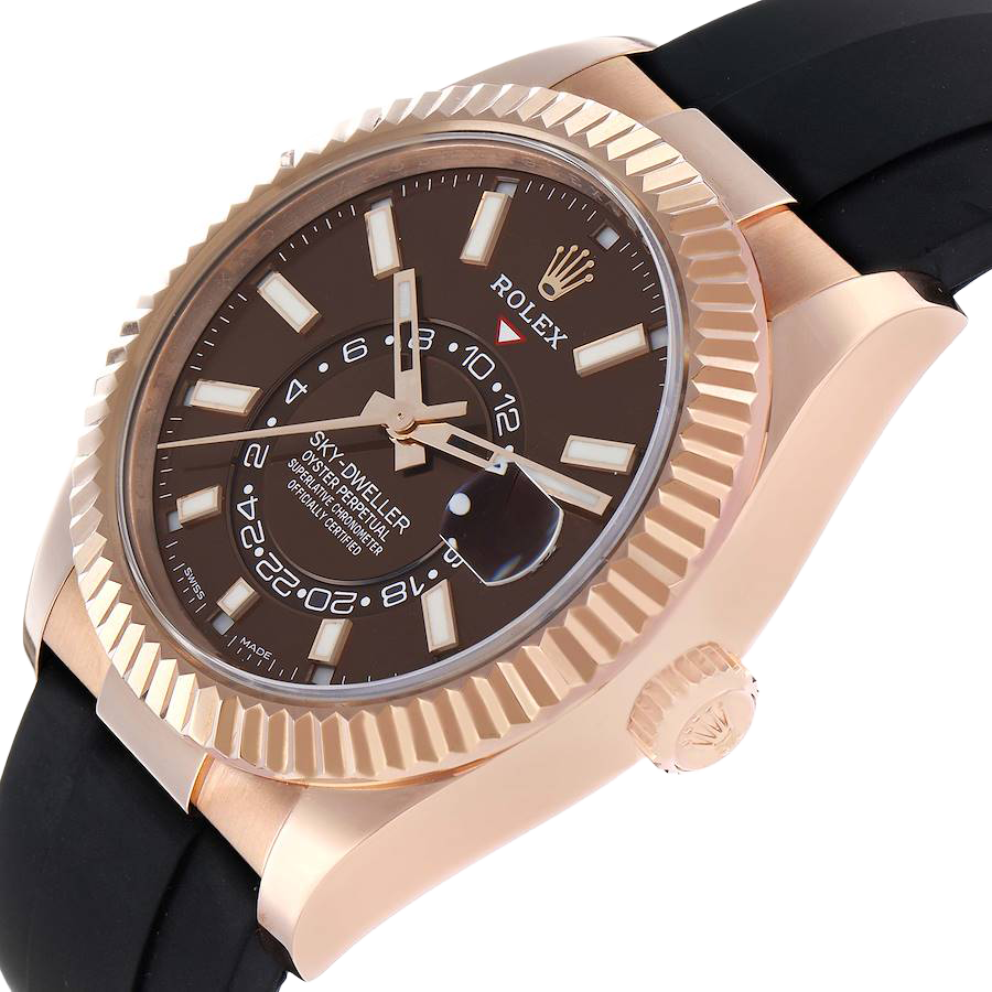 Model Name: Rolex Sky-Dweller Rose Gold Chocolate Brown Dial Mens Watch 326235