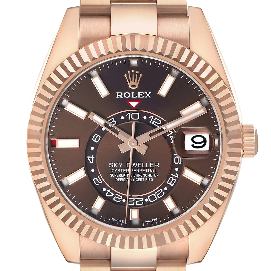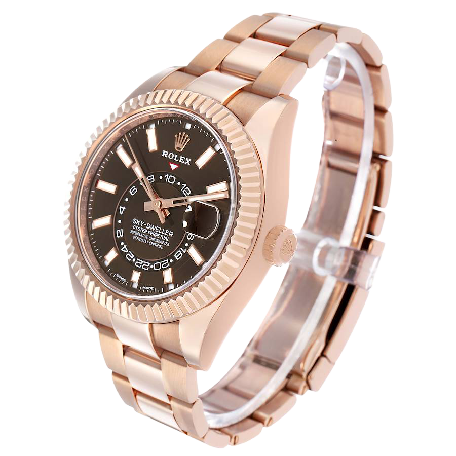 Model Name: Rolex Sky-Dweller Rose Gold Chocolate Brown Dial Mens Watch 326935