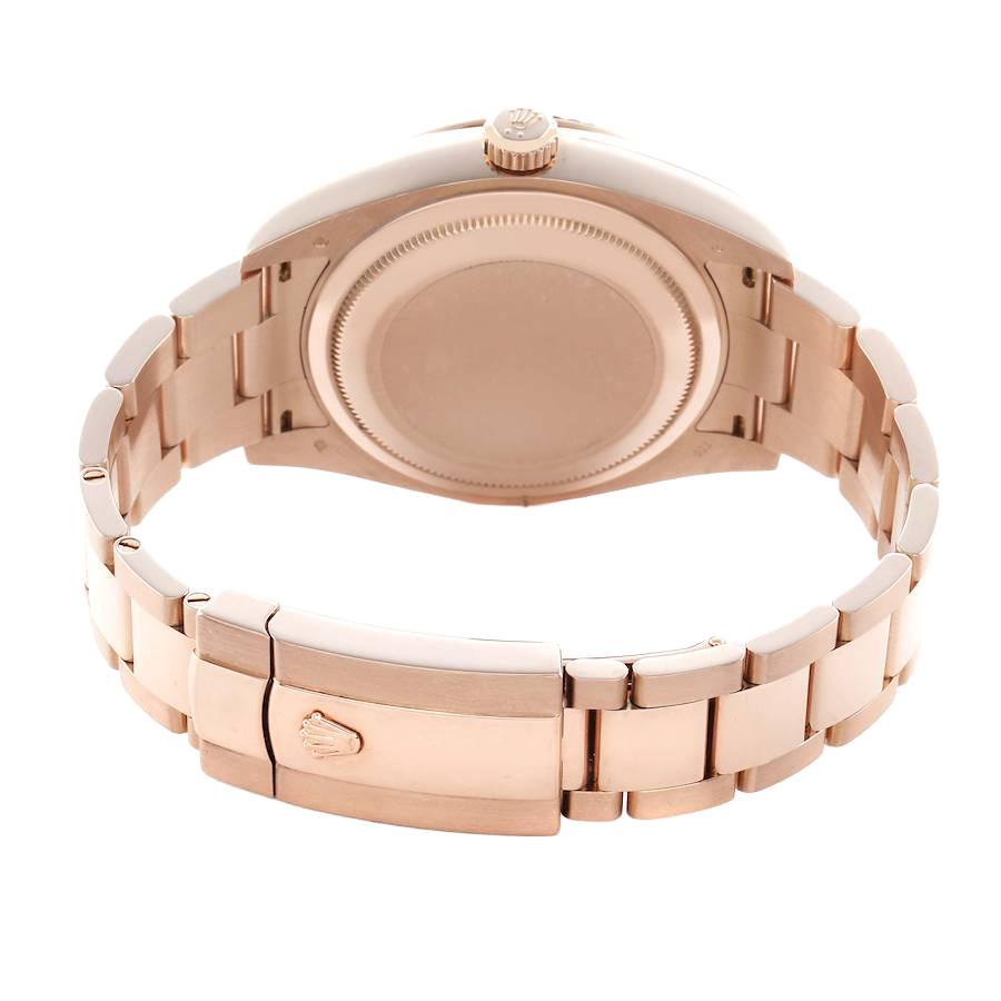 Case: 18k rose gold oyster case 42.0 mm in diameter. Rolex logo on the screw-down twinlock crown.