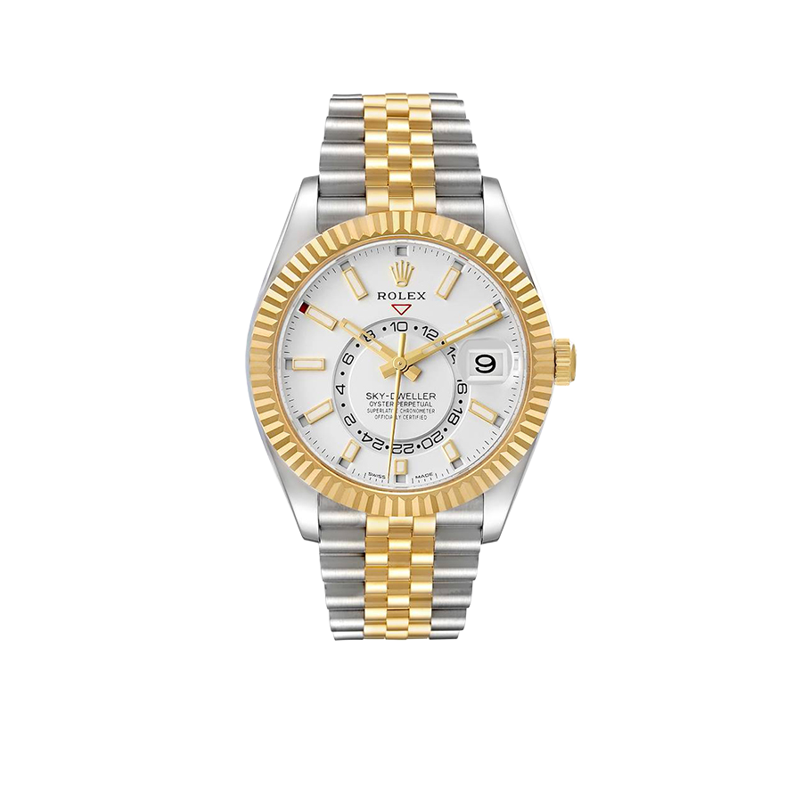 Model Name: Rolex Sky-Dweller Steel Yellow Gold Silver Dial Mens Watch 326933