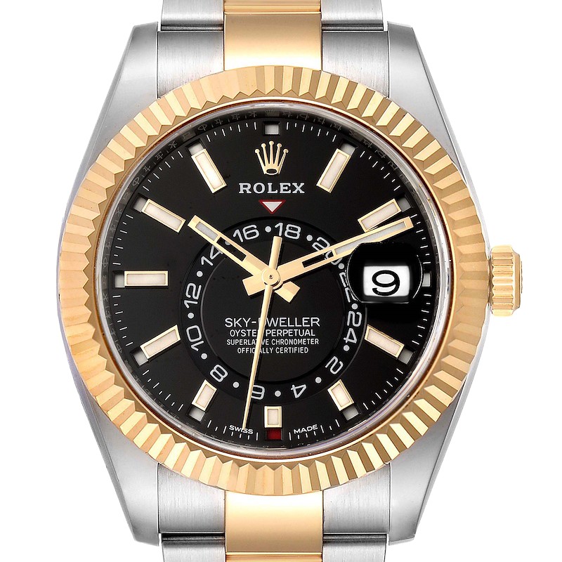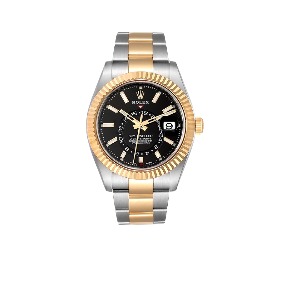 Model Name: Rolex Sky Dweller Yellow Gold Steel Black Dial Mens Watch 326933