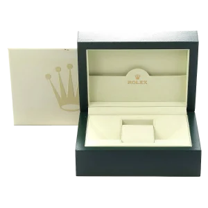 Bracelet: Stainless steel and 18K yellow gold oyster bracelet with flip-lock clasp. Fits a 7 3/4″ wrist.