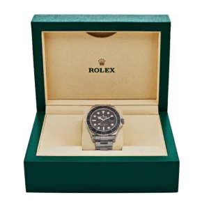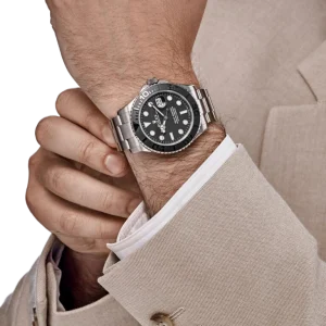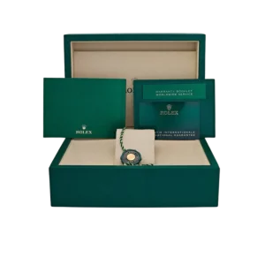 The matte black dial ensures maximum legibility, featuring Chromalight-filled hour markers and hands for enhanced visibility in low-light conditions. A bi-directional black Cerachrom bezel with raised numerals allows for precise time tracking, making it a practical tool for yachting and maritime adventures. Powered by the Rolex Caliber 3235, the watch boasts a 70-hour power reserve and Rolex’s hallmark precision. With its innovative use of titanium and modern, rugged design, the Yacht-Master 226627 is a bold choice for those who seek both high performance and distinctive styling.