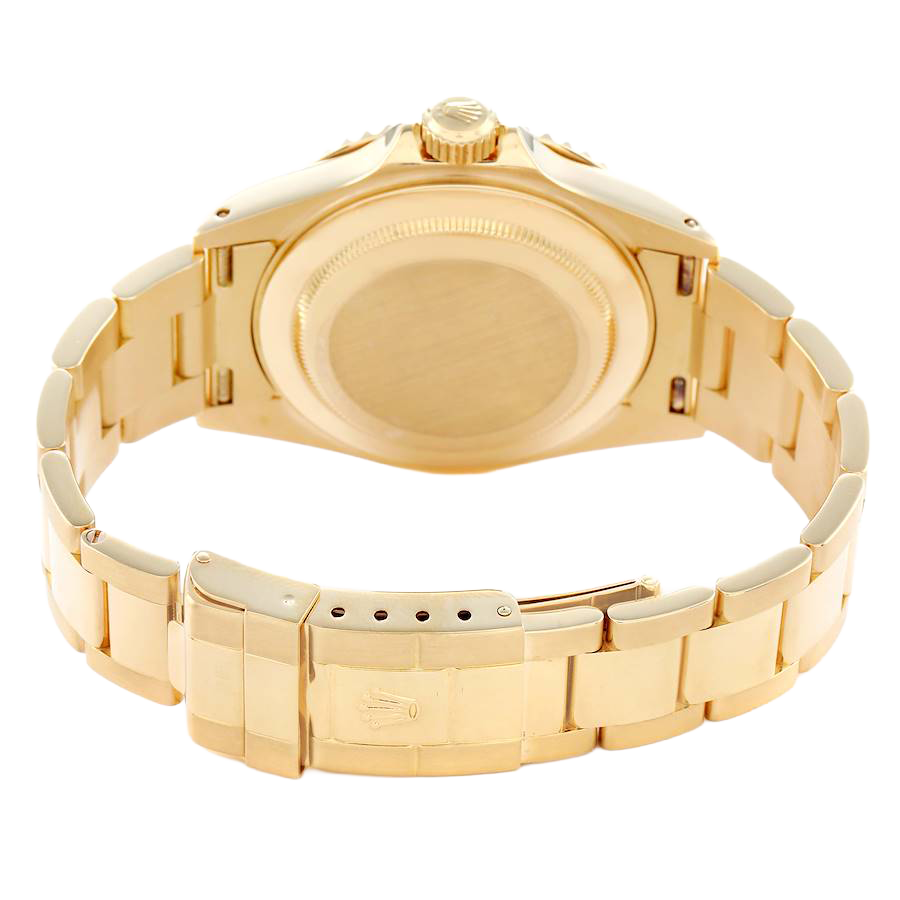 Case: 18K yellow gold oyster case 40.0 mm in diameter. Screwed-down caseback and crown, Triplock winding-crown protected by the crown guard. Rolex logo on the 18k yellow gold crown.