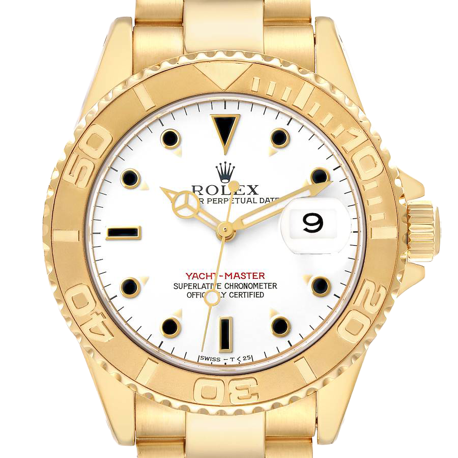Model Name: Rolex Yachtmaster Yellow Gold White Dial Mens Watch 16628