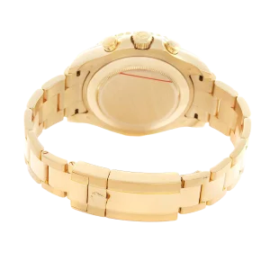 Case: 18K yellow gold oyster case 44.0 mm in diameter. Two 18k yellow gold pushers operate the chronograph functions. Pointed crown guards. Rolex logo on the 18k yellow gold screw-down crown.
